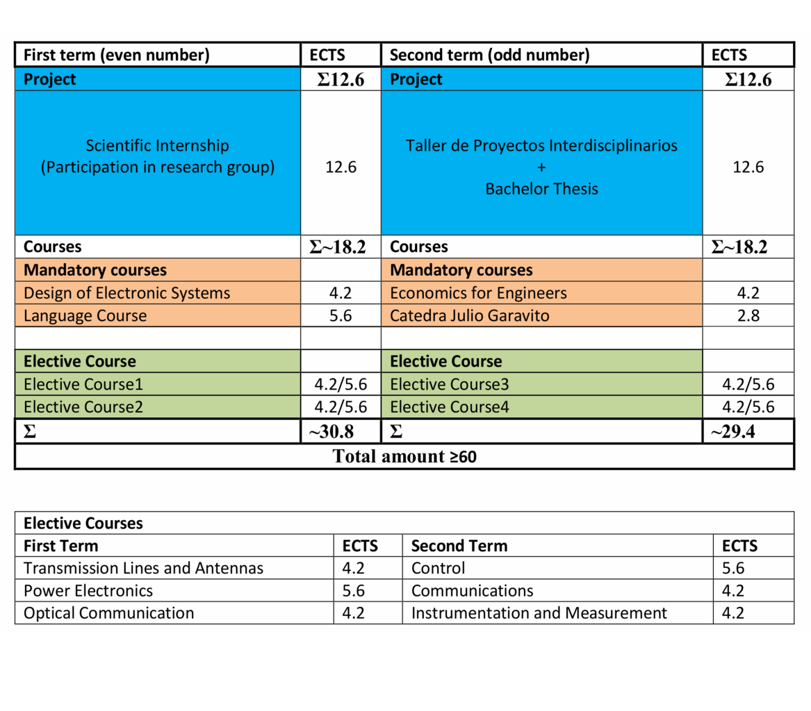 - You earn two degrees in one programme (a German Bachelor of Science in Electrical Engineering and Information Technology and the Colombian Ingeniero/-a Electrónico/a).