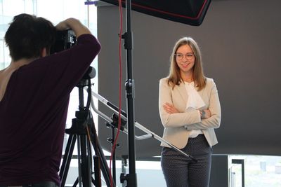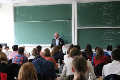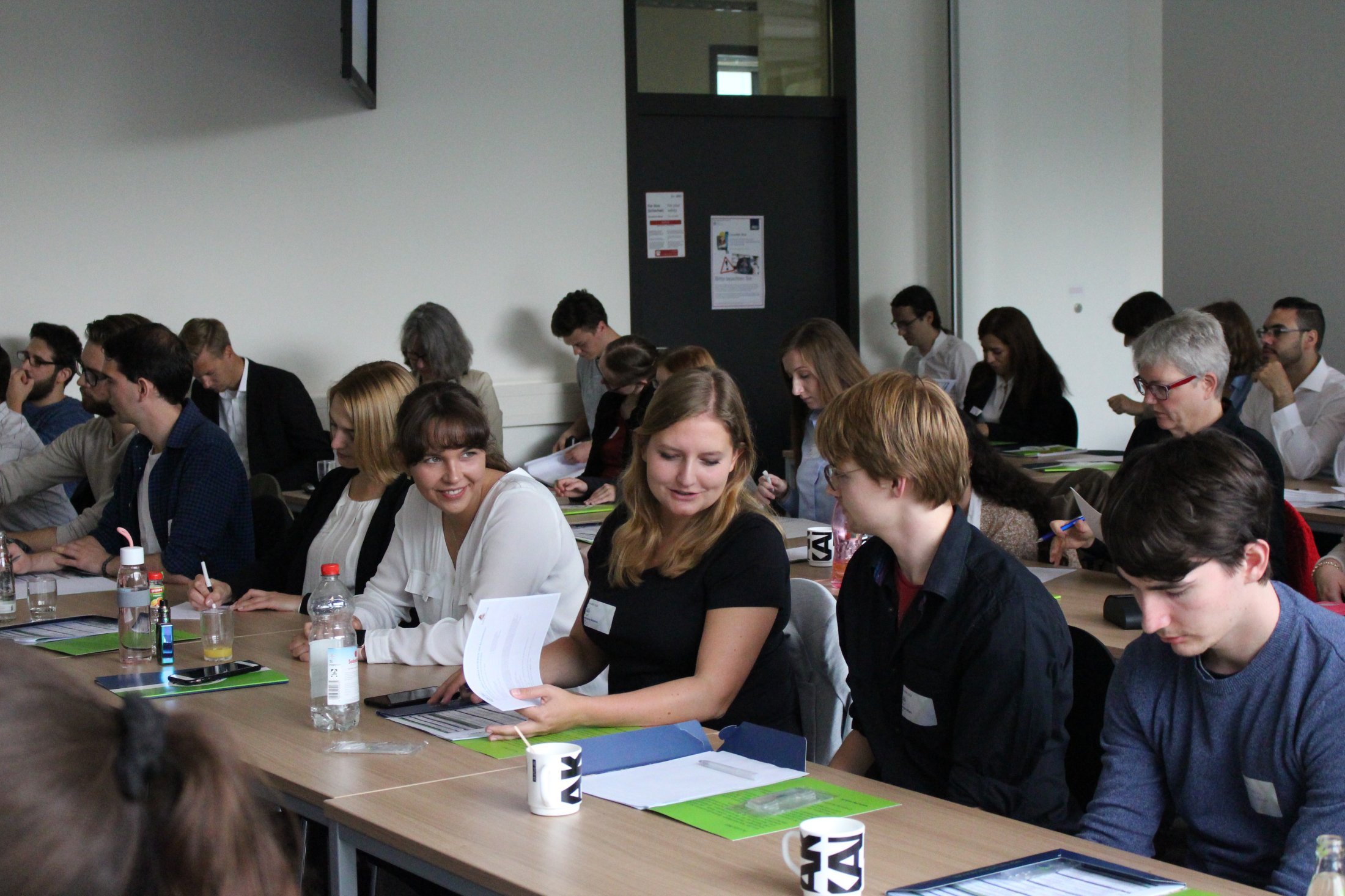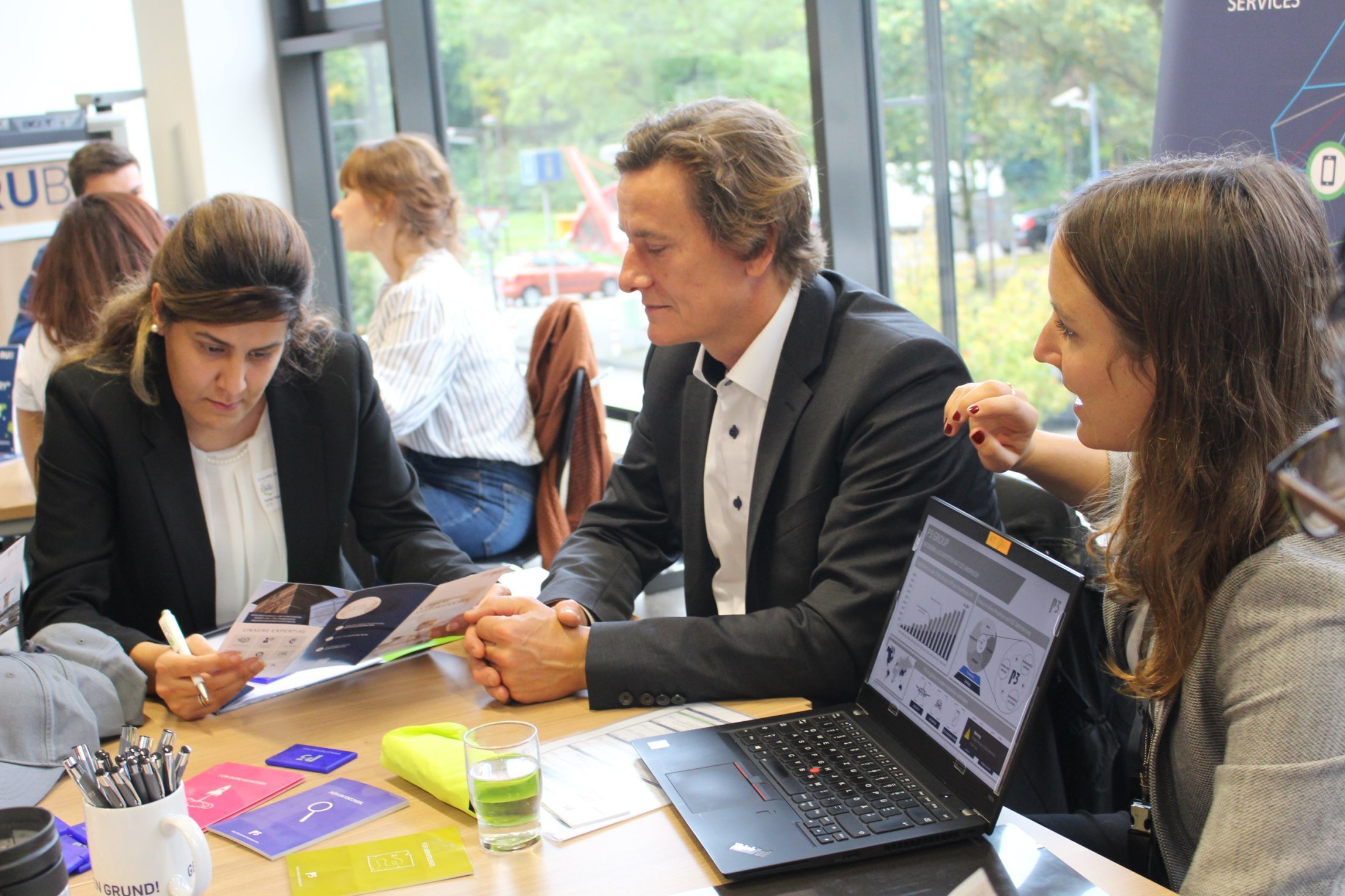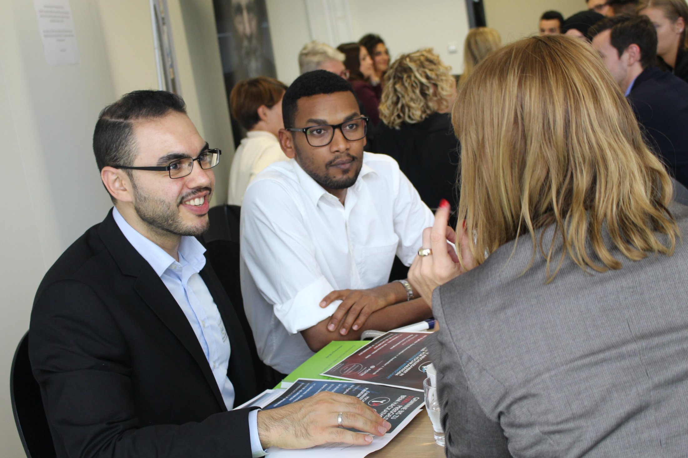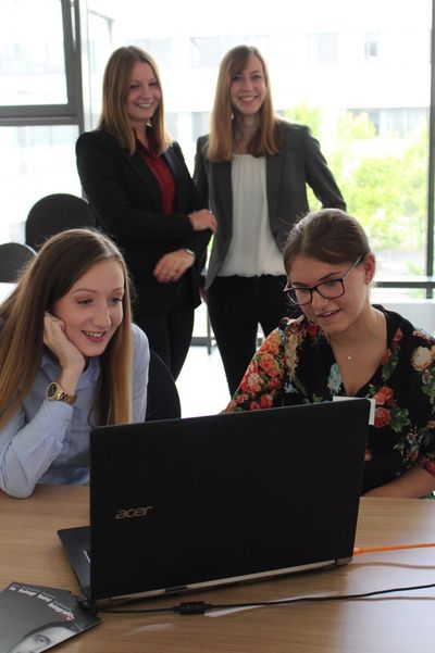 Im Anschluss daran machte Berufsberater Marcus Holzheimer in seinem Vortrag „Richtig Bewerben“ klar, dass nicht immer erst die schriftliche Bewerbung zum Traumjob führt und stellte die Bedeutung von Netzwerken einmal mehr heraus. Zudem beriet er die Teilnehmenden an beiden Tagen ganz individuell, stand Rede und Antwort für allerlei Fragen rund um den richtigen Einstieg ins Berufsleben und nahm sich Zeit für jede einzelne Bewerbung. Um die Vorbereitungen für den zweiten Tag komplett zu machen, konnten sich die Teilnehmenden zusätzlich von Profi-Fotografin Claudia Jaquet ablichten lassen. Neben rhetorischen Tipps und Kniffen, wie man sich Aufmerksamkeit verschafft und diese optimal für sich nutzt, ergab sich für die Teilnehmenden an Tag zwei die Möglichkeit, direkt mit potentiellen Arbeitgebern in Kontakt zu kommen. Die Karriereveranstaltung startete erneut mit einer kurzen Begrüßung, bevor sich Männer und Frauen dann je nach Interesse auf die jeweiligen Vorträge aufteilten. Vertreten waren an diesem Tag die Firmen AIR LIQUIDE, Avery Dennison, Bosch, BP Europa, Brunel, Deilmann-Haniel, Evonic Industrie, die P3 group, das Forschungszentrum Jülich, G-DATA, HOCHTIEF, IBM Security, die IHK Gesellschaft für Informationsverarbeitung, KOSTAL, Schneider Electric, thyssenkrupp, TÜV NORD, VW Infotainment, W3L und Intel. Zudem gab es in diesem Jahr erstmalig einen Beitrag des Worldfactory Start-up Centers der Ruhr-Universität Bochum zum Thema Entrepreneurship.