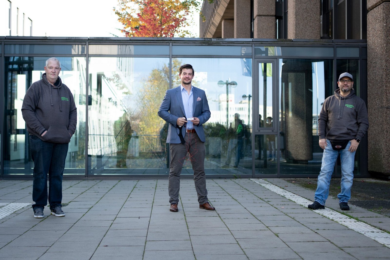 As if they didn't have enough to worry about already! Often people who have to spend their nights on the street are robbed in their sleep and robbed of their few belongings. In order to give them at least a little protection from this, in summer semester 2020 RUB students developed a free alarm system. The so-called Clochard Alert will be tested for the first time in December 2020. When it comes to humanitarian or social activities with technical relevance, Dr. Christoph Baer from the Chair of Electronic Circuit Technology at the Faculty of Electrical Engineering and Information Technology becomes active, so no wonder he also is the initiator of the Clochard Alert. Last Tuesday, November 10th, 2020, Baer (center) presented the alarm system to the founders of the non-profit association "Unsichtbar (Invisible) e.V.", Holger Brandenburg (left) and Andreas Steinhof (right).