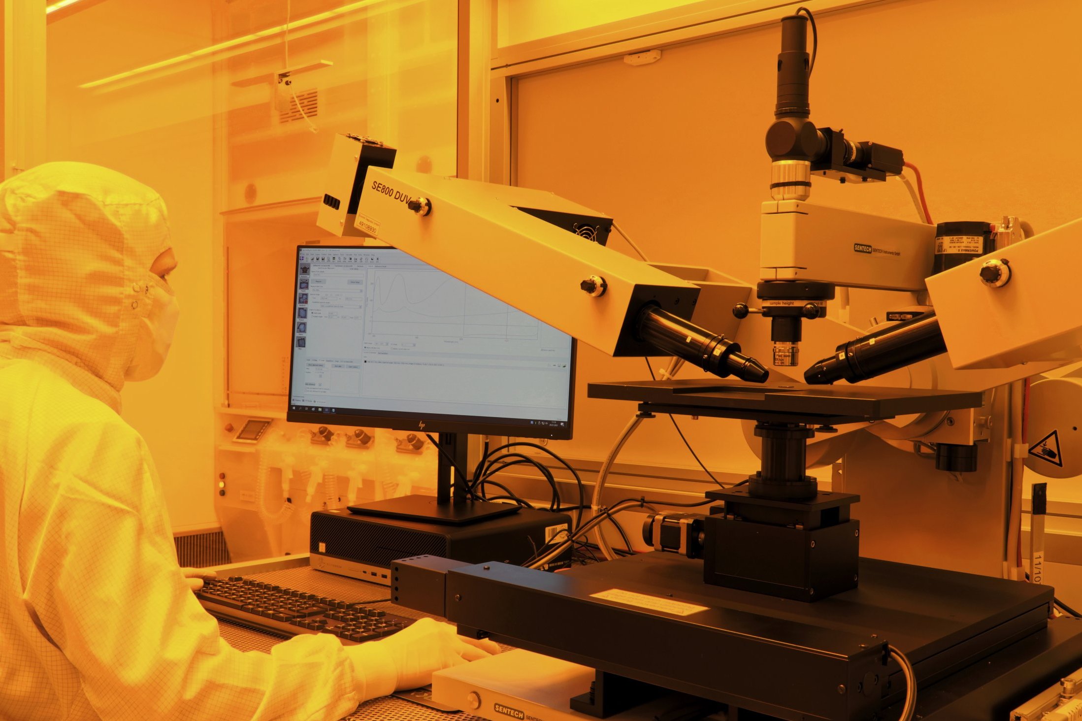- Mask-Aligner, Heatpads, Oxidizing ovens, Plasma incinerator, Spin coater, Laser lithography system (structure widths > 600 nm), Scanning electron miscroscope / electron beam lithography system, Inert gas glove box with spin coater and Ozone Cleaner, Plasma etching machine (ICP-RIE), Evaporation systems, Wafer saws, Plasma coating system (ICPECVD), Tempering systems, Scoring device