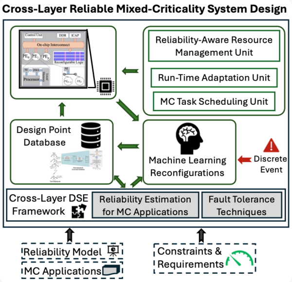 Wide range of embedded systems found in many industrial application domains, such as automotive and avionics, are evolving into Mixed-Criticality (MC) systems, where various applications in terms of assurance levels are executed onto a common platform to meet cost, space, timing, and power consumption requirements while guaranteeing a safe operation. With the technology scaling in these modern embedded platforms, which leads to exacerbating the rate of manufacturing defects and physical fault rates, the safety and reliability issues have increased tremendously in all electronic systems, from unreliable execution of MC applications to unreliable hardware. In order to design a reliable system, fault mitigation and reliability methods need to be applied in multiple system abstraction layers. However, this isolated layer-wise fault-mitigation has a high cost (in terms of power, area, and timing). Therefore, cross-layer solutions are applied to provide application-specific and low-cost fault tolerance by distributing the fault mitigation activity across the layers. This project (Lean-MICS) investigates the feasibility of developing a hybrid ML-based cross-layer reliability design for embedded MC systems to estimate and improve the objectives of reliability, QoS, and power consumption, at design- and run-time.