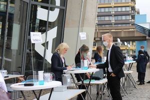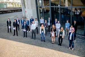 Während die Überreichung der Urkunden im Audimax mit Masken und Abstand stattfand, durfte anschließend im Freien mit einem Sekt angestoßen werden. Auch das Erinnerungsfoto mit Familie und Kommilitonen durfte natürlich nicht fehlen.