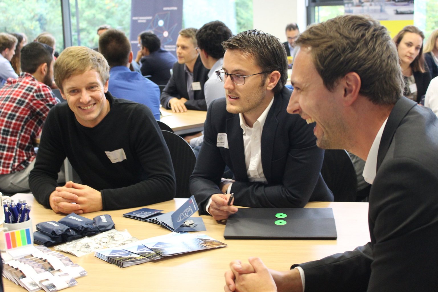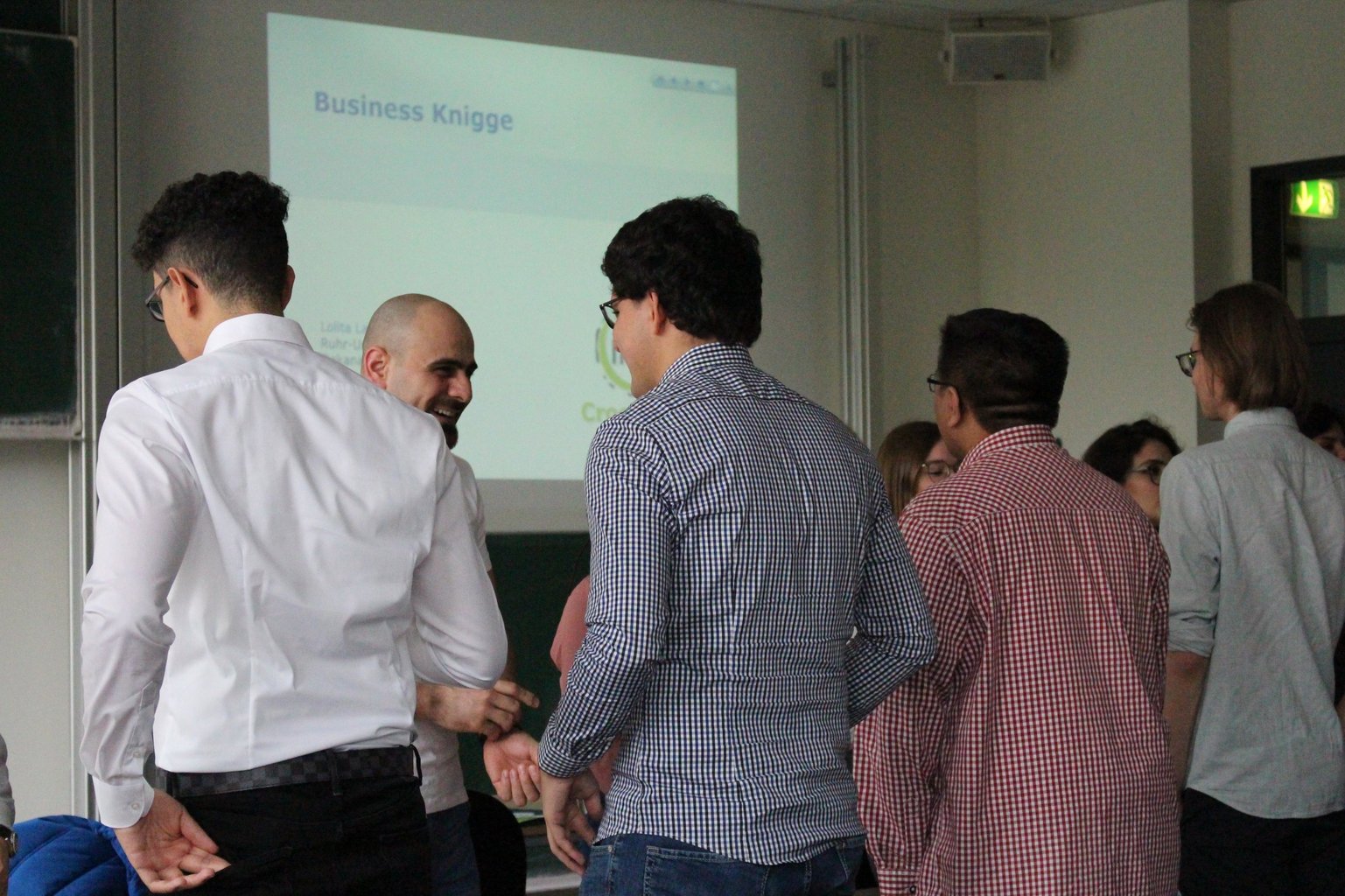 Im Anschluss daran machte Berufsberater Marcus Holzheimer in seinem Vortrag „Richtig Bewerben“ klar, dass nicht immer erst die schriftliche Bewerbung zum Traumjob führt und stellte die Bedeutung von Netzwerken einmal mehr heraus. Zudem beriet er die Teilnehmenden an beiden Tagen ganz individuell, stand Rede und Antwort für allerlei Fragen rund um den richtigen Einstieg ins Berufsleben und nahm sich Zeit für jede einzelne Bewerbung. Um die Vorbereitungen für den zweiten Tag komplett zu machen, konnten sich die Teilnehmenden zusätzlich von Profi-Fotografin Claudia Jaquet ablichten lassen. Neben rhetorischen Tipps und Kniffen, wie man sich Aufmerksamkeit verschafft und diese optimal für sich nutzt, ergab sich für die Teilnehmenden an Tag zwei die Möglichkeit, direkt mit potentiellen Arbeitgebern in Kontakt zu kommen. Die Karriereveranstaltung startete erneut mit einer kurzen Begrüßung, bevor sich Männer und Frauen dann je nach Interesse auf die jeweiligen Vorträge aufteilten. Vertreten waren an diesem Tag die Firmen AIR LIQUIDE, Avery Dennison, Bosch, BP Europa, Brunel, Deilmann-Haniel, Evonic Industrie, die P3 group, das Forschungszentrum Jülich, G-DATA, HOCHTIEF, IBM Security, die IHK Gesellschaft für Informationsverarbeitung, KOSTAL, Schneider Electric, thyssenkrupp, TÜV NORD, VW Infotainment, W3L und Intel. Zudem gab es in diesem Jahr erstmalig einen Beitrag des Worldfactory Start-up Centers der Ruhr-Universität Bochum zum Thema Entrepreneurship.