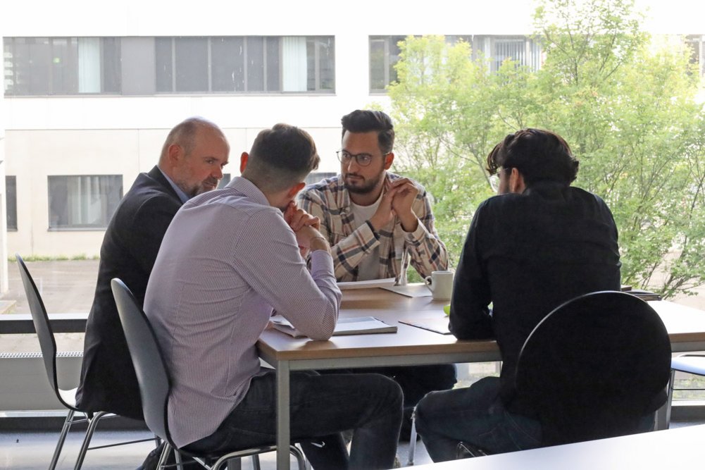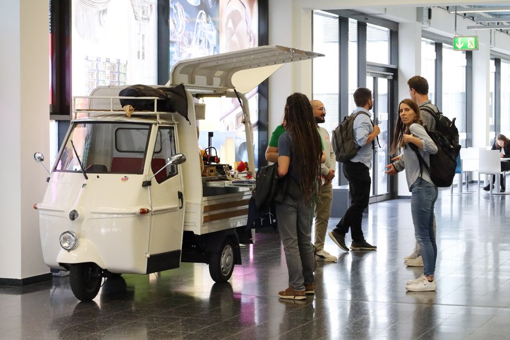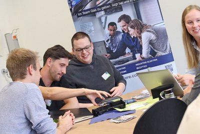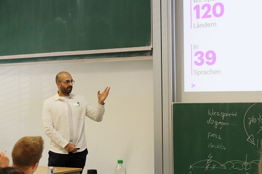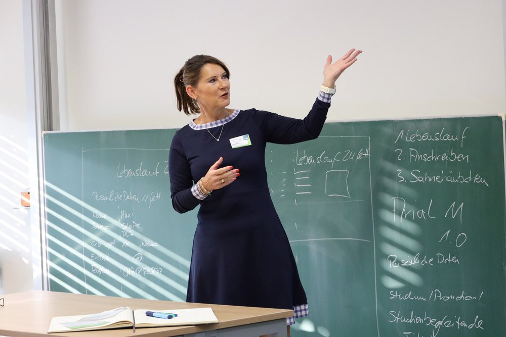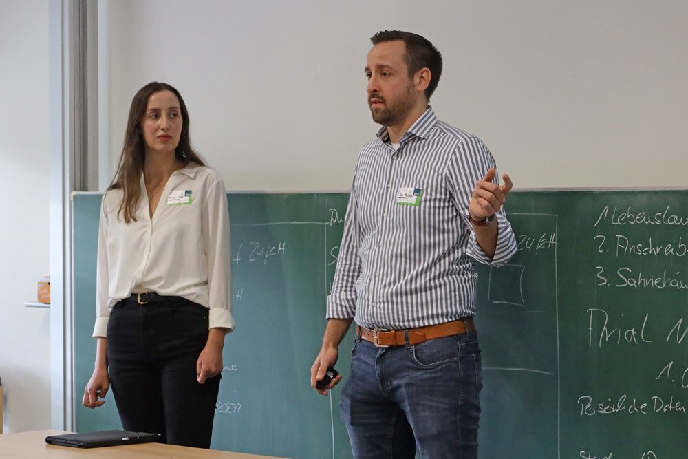 Beim anschließenden Speed-Dating konnten die Studierenden Einstiegsmöglichkeiten bei den Unternehmen kennenlernen und sich auf einer persönlichen Ebene mit den Vertreter*innen vernetzen. Und natürlich fehlten auch die kostenlosen Bewerbungsfotos von Claudia Jaquet und der Bewerbungsmappencheck sowie der Exkurs zum Thema Networking von Marcus Holzheimer nicht.