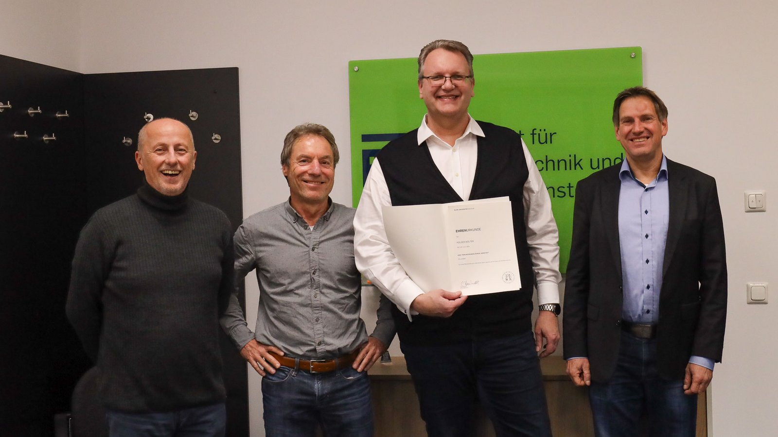Unser Dekan Prof. Thomas Musch, Lehrstuhleiter Prof. Mussenbrock sowie Prof. Awakowicz überreichten am 20. November feierlich die Urkunde.