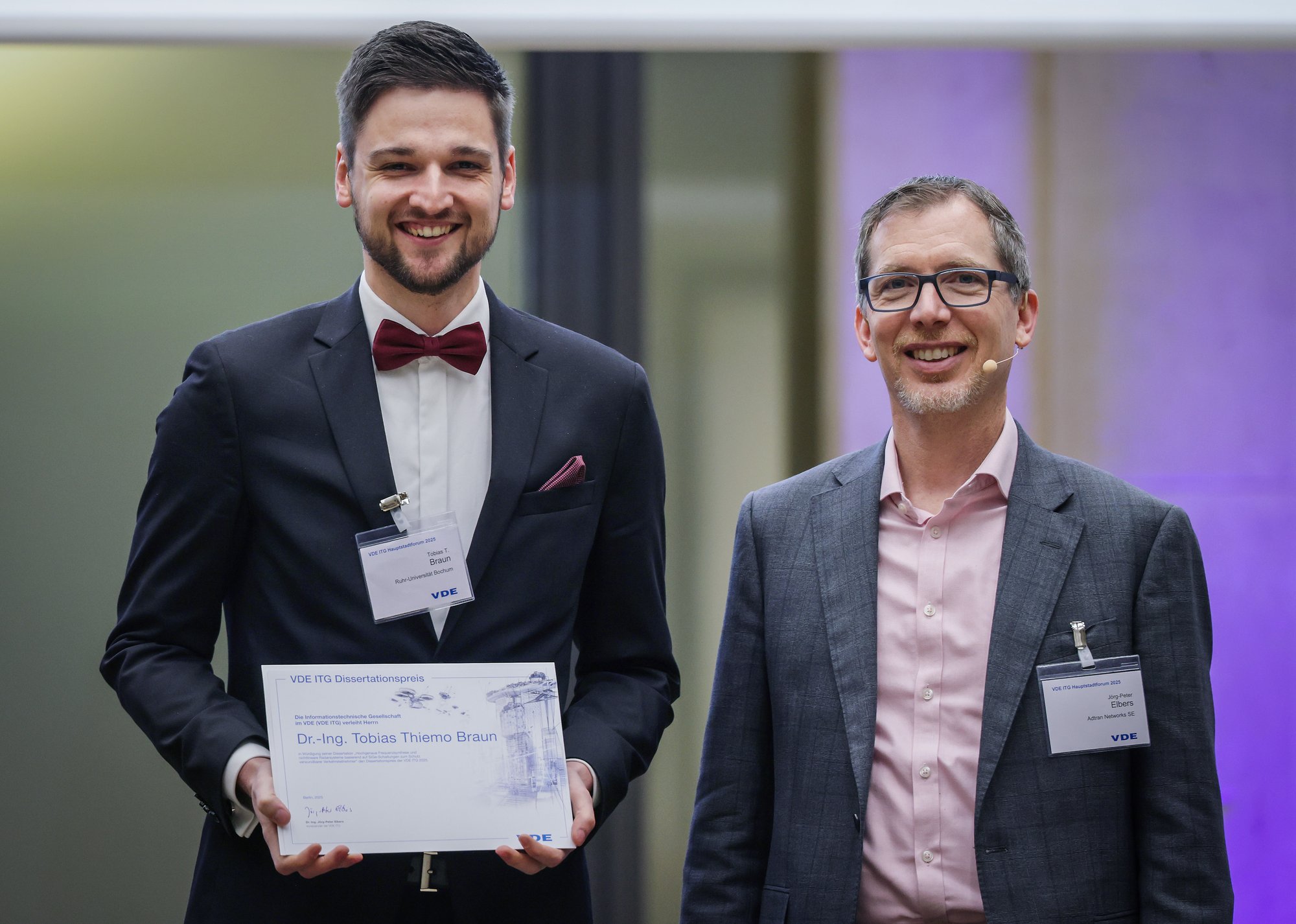 Darüber hinaus wurde Tobias T. Braun mit dem VDE ITG Dissertationspreis ausgezeichnet. Der Preis würdigt seine Dissertation zum Thema "Hochpräzise Frequenzsynthese und nichtlineare Radarsysteme auf Basis von SiGe-Schaltungen zum Schutz verwundbarer Verkehrsteilnehmer", die am Lehrstuhl für Integrierte Systeme entstanden ist als eine der besten drei des Jahres 2025.