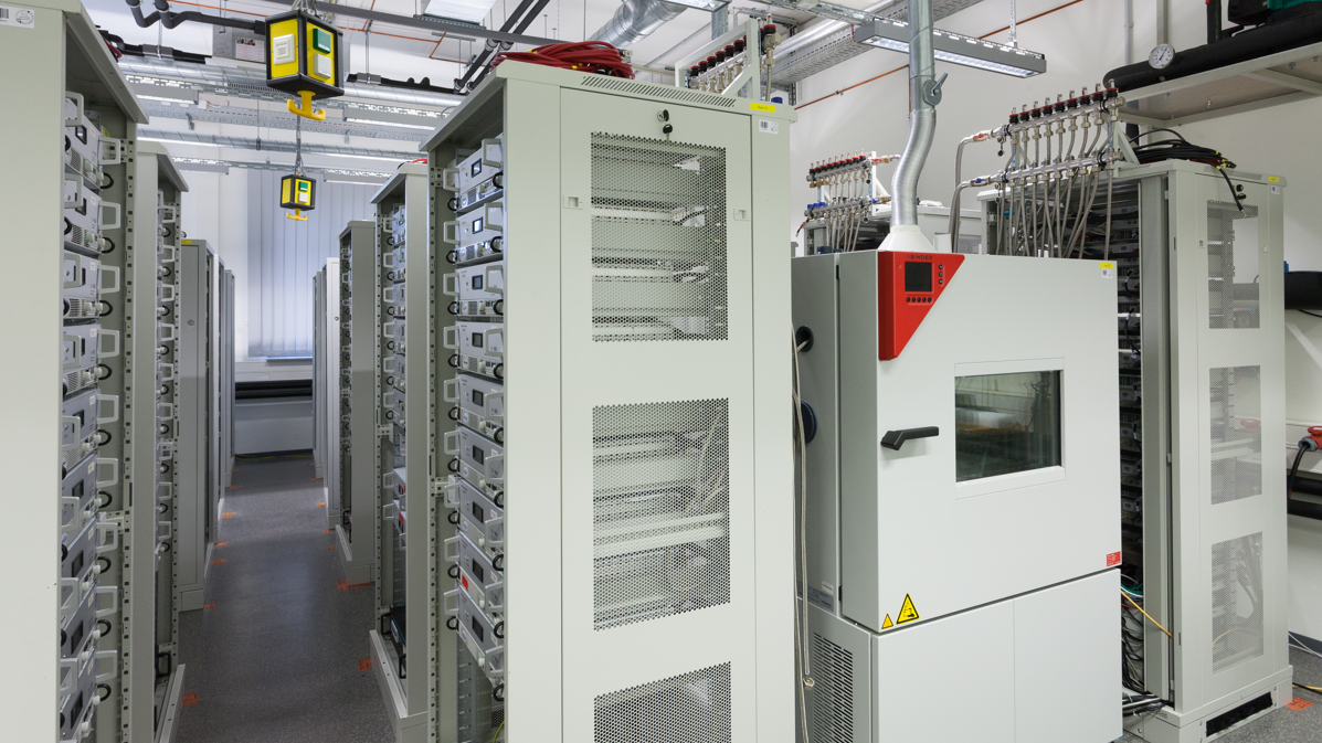 Die Schlüsselfrage der Elektromobilität ist weiterhin die begrenzte Möglichkeit zur Speicherung elektrischer Energie in Fahrzeugen. Die Forschungsgruppe Kfz-Elektronik entwickelt und produziert spezielle Testsysteme für Energiespeicher wie Lithium-Ionen-Batterien unter Berücksichtigung der automobilen Randbedingungen.