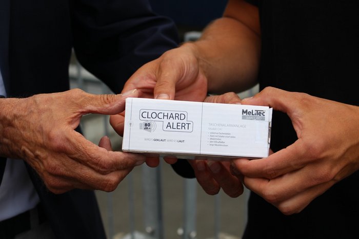 Nach einer einjährigen Testphase sind die sogenannten „Clochard Alerts“ nun optimiert und vom Kooperationspartner, der Firma Melitec, Anfang Juli an den BVB-Fanclub „Schwarz Gelbe Hohenlimburg 09“ übergeben worden. Die kleinen Alarmanlagen, die vor allem Obdachlose vor Diebstahl schützen sollen, wurden durch das Team von Dr. Christoph Baer an der Ruhr-Universität Bochum entwickelt und durch die Firma Melitec produktreif gemacht.