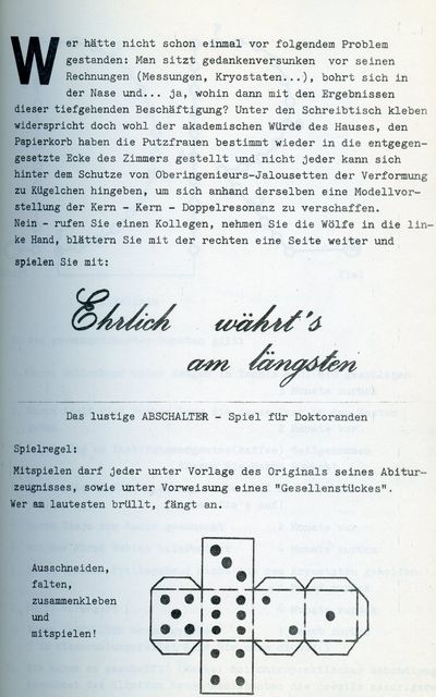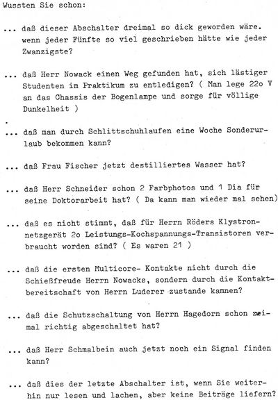 Kennen Sie das Magazin „Der Abschalter“ vom Lehrstuhl für Elektronische Schaltungen von Prof. Winfried Klein? 1969 wurde das Lehrstuhlmagazin erstmals veröffentlicht. Bis 1977 erschien es einmal im Jahr.