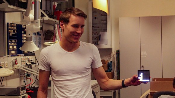 Lukas Nagel, einer der derzeitigen EWS-Betreuer, demonstriert Ralf ein aktuelles Projekt: den LED-Würfel. Der Würfel ist eine 8x8 LED-Matrix mit verschiedenen Modi: einem Sound Reactive Mode oder einem Modus, in dem Text und verschiedene Animationen angezeigt werden können. Gesteuert wird das Ganze über eine Webpage und wird lokal auf den Mikrocontroller verarbeitet – alles eigens gebaut und programmiert.