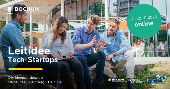 Im November findet der Ideenwettbewerb „Leitidee - Tech-Start-ups“ des WORLDFACTORY Start-up Center der Ruhr-Universität Bochum in Kooperation mit der Bochum Wirtschaftsentwicklung statt. Die Leitidee soll Studierende ermutigen eine Gründungsidee weiterzuentwickeln und bestenfalls umzusetzen. Vom 27.11. - 29.11.2020 haben die Teilnehmer*innen die Möglichkeit ihre Gründungsidee mit der Unterstützung durch Fachexperten*innen und diversen fachspezifischen Workshops (z. B. zum Prototyping, Patente, B2B-Vertrieb für Tech-Start-ups u.v.a.) auszuarbeiten. Neben der inhaltlichen Unterstützung, soll auch der Austausch mit weiteren Gründungsinteressierten und der Netzwerkaufbau begünstigt werden. Am Finaltag pitchen die Teilnehmer*innen vor einer Fachjury und erhalten ein detailliertes Feedback zu ihren Präsentationen. Prämiert wird der 1. Platz mit 1000 € Preisgeld. Die Teilnahme am Ideenwettbewerb ist kostenlos und wird aufgrund der aktuellen COVID-19-Situation digital via Zoom durchgeführt. Alle Informationen und die Teilnahmebedingungen zur „Leitidee“ finden Sie hier: https://www.worldfactory-leitidee.de/.