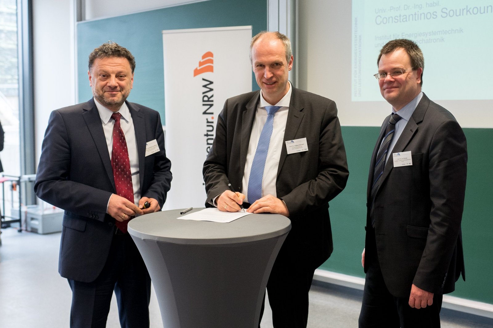 In Bochum wird mit dem Aufbau einer Fraunhofer IWES-Außenstelle HoMAS (Hochintegrierte Mechatronsiche AntriebsSysteme) unter der Leitung von Herrn Prof. Dr.-Ing. Constantinos Sourkounis ein Kompetenzzentrum für Windenergie errichtet. Mit tatkräftiger Unterstützung durch das Rektorat, insbesondere Herrn Prof. Dr.-Ing. Andreas Ostendorf, wurde der Kooperationsvertrag zwischen dem Fraunhofer-Institut für Windenergiesysteme (IWES) und der Ruhr-Universität Bochum (RUB) nun abgeschlossen.