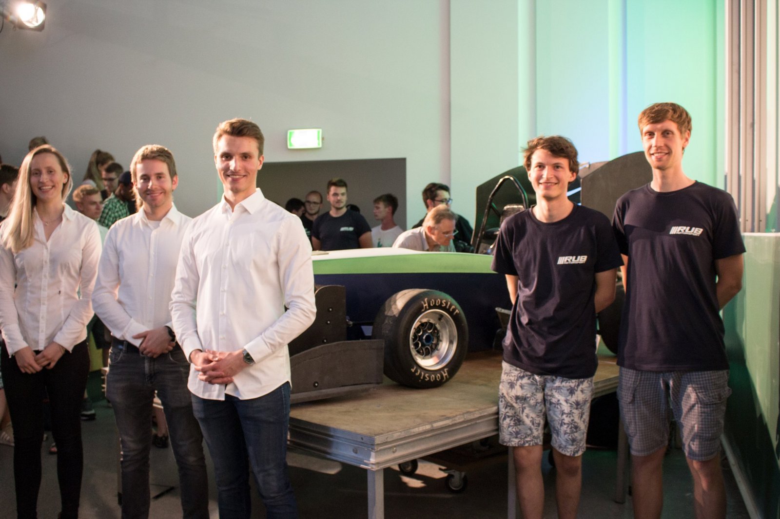 Informativ und unterhaltsam präsentierten die jungen Konstrukteurinnen und Konstrukteure ihr neustes Modell. 2008 gründete sich der Verein, die erste Eventteilnahme fand 2011 statt. Auch in diesem Jahr wird das Team wieder am alljährlichen Wettbewerb um das beste Fahrzeug teilnehmen. Für insgesamt vier Wettbewerbe hat sich das Team in diesem Jahr qualifiziert. Marc Hamme, Student der Elektrotechnik, erklärte: "Fast jedes einzelne Teil an unserem RUB 19 wurde in Eigenregie in unserer Werkstatt von unserem Team gefertigt." Von den selbstentwickelten Platinen, die zum Beispiel dem Fahrer direkte Infos ins Cockpit übermitteln, bis hin zur aerodynamischen Form des Rennwagens - alles ist durch die hohe Expertise, Kreativität und Willenskraft des Teams entstanden. Der RUB 19 verfügt über insgesamt vier Microcontroller-Systeme und beinhaltet einen Kabelbaum von 200 Metern Kabel, womit 180 Komponenten verbunden werden. Definitiv beeindruckend und so gab es zum Ende der Vorstellung seitens der Besucher Beifall und Applaus für den neuen Flitzer, der in diesem Jahr für das RUB-Team an den Start gehen wird. (Foto: RUB/Zeitel)