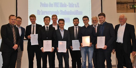 Dominik Eickmann und Dennis Hotze erhielten den Preis für die „Entwicklung und Verifikation eines autonomen Logistik-Fahrzeugs“. Im Rahmen ihrer Arbeit gelang es ihnen auch den betriebswirtschaftlichen Aspekt eines solchen Projekts zu berücksichtigen und sammelten 12.000 Euro Sponsorengelder.