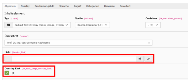 Der Link zur Personenseite muss manuell gesetzt werden. Dafür müssen Sie einfach auf das Linksymbol klicken und die entsprechende Personenseite auswählen. Bitte benutzen Sie immer diese Funktion und tippen Sie den Link nicht manuell ein, da sonst keine Verlinkung der beiden Datensätze im Backend gesetzt ist und der Link "brechen" könnte, falls die Seite verschoben wird.