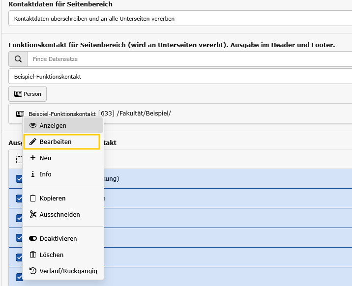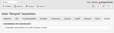 Dort kann im Tab “Kontakt” das Feld “Kontaktdaten für Seitenbereich” auf “Kontaktdaten überschreiben…” gestellt werden.
